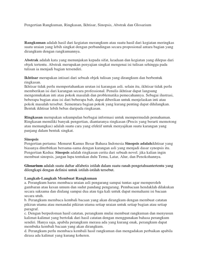 Pengertian, ciri, fungsi dan langkah membuatnya, semoga artikel diatas bisa menambah wawasan kita dan bermanfaat. Dalam kamus besar bahasa indonesia (kbbi), sinopsis adalah ringkasan karangan yang biasanya diterbitkan bersama dengan karangan asli yang menjadi dasar sinopsis. Daftar isi artikel lengkap hide a. Sedangkan pengertian sinopsis menurut kbbi , sinopsis ini adalah suatu karangan ilmiah biasa digunakan bersamaan itu dengan karangan asli yang menjadi dasar sinopsis itu. Bentuk dari sinopsis biasanya singkat, padat, dan.